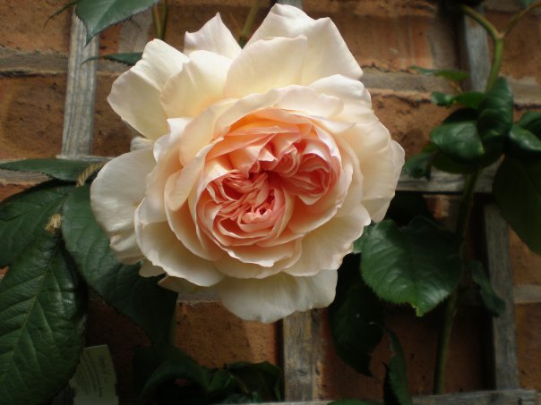 Rosa “A Shropshire Lad”, growing in my garden. This rose was bred by David Austin, a Shropshire lad himself, and introduced in 1996. It was named after the wistful late Victorian poetic work by A. E. Housman – not a Shropshire lad! It is said he had never visited the landscape he visited at the time he wrote about it. However, the mood of the poem is echoed perfectly by this beautiful, fragrant, peachy pink bloom.