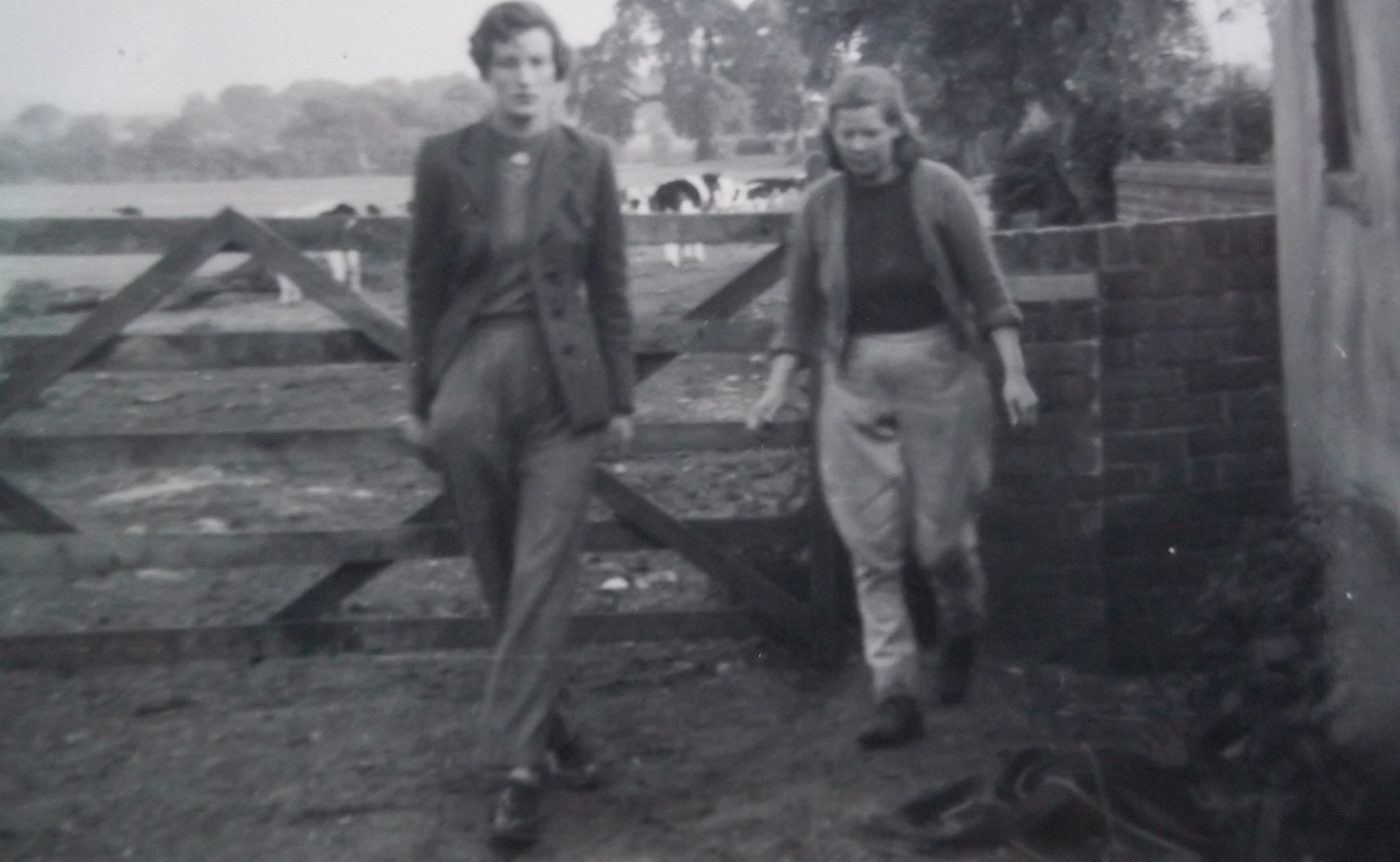 At Owlett Hall Farm, Lynn Lane, Shenstone. Mom, left, and Aunt Mary.