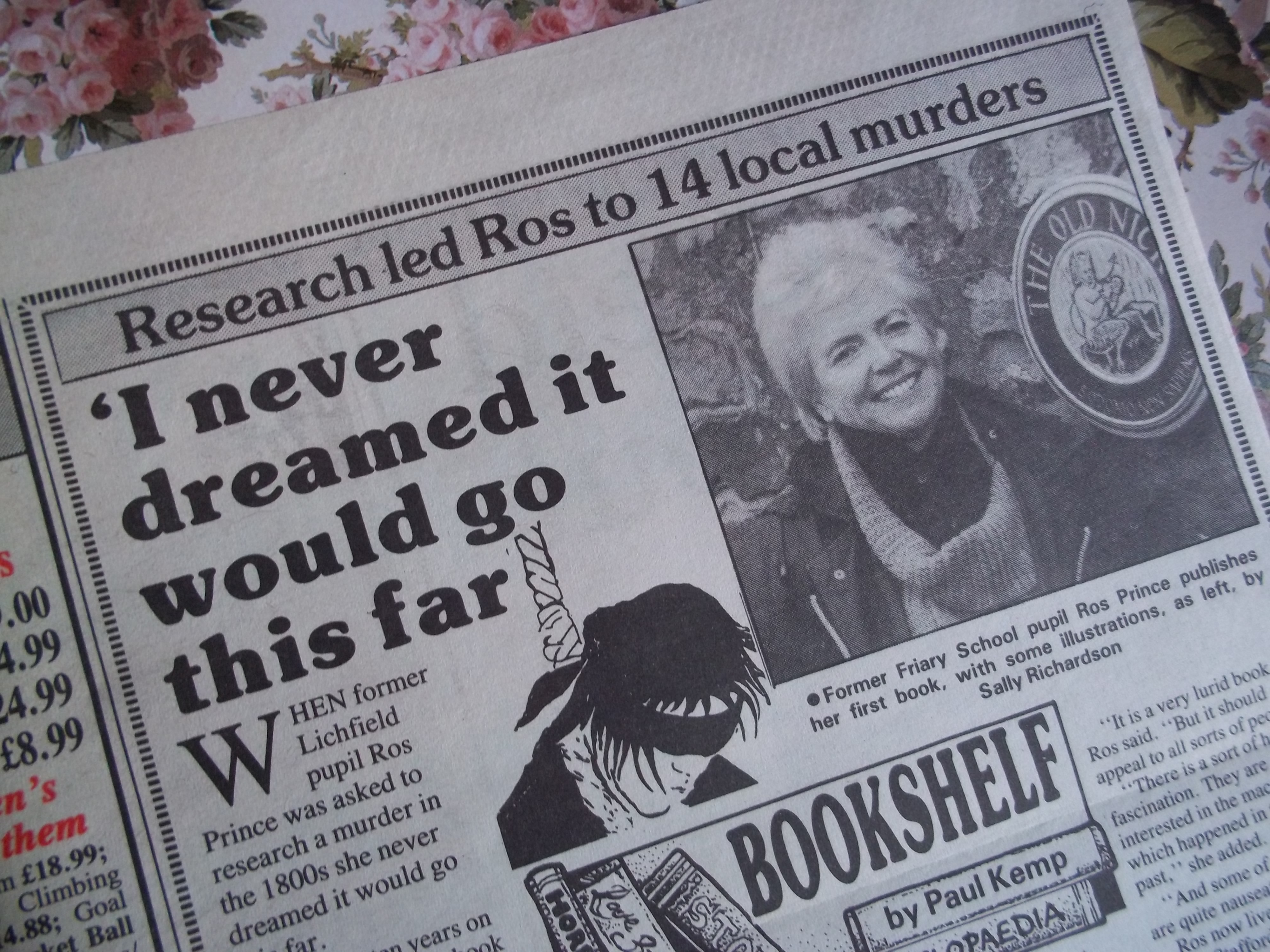The Lichfield Mercury featured Ros and her books. At that time The Librarian of Cheadle and Blyth Bridge libraries, Ros has had several volumes published on the subjects of Staffordshire Crimes, Curiosities, and Castles.