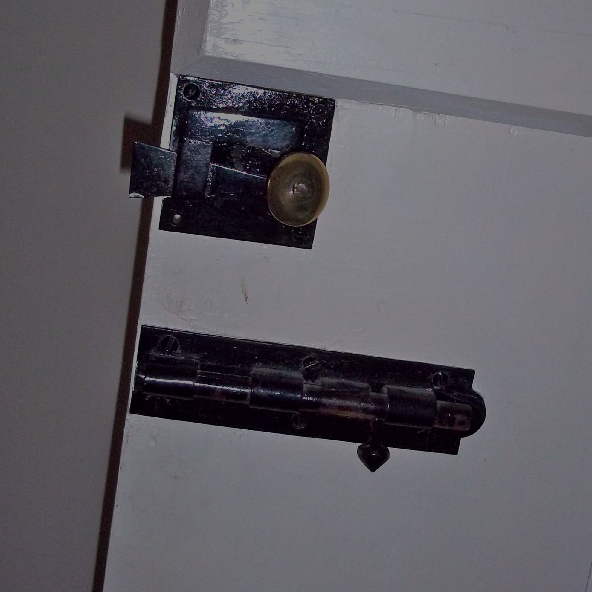 We had wondered why even the internal bedroom doors in our cottage sported such hefty Victorian bolts on their interiors – and the heavy planked oak back door can be additionally secured with a bar threaded through fastenings on either side of the jamb.