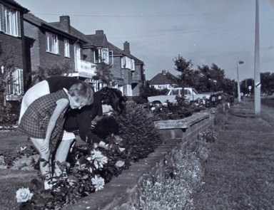 “iceberg,” “Blue Moon,” “Peace,” I could recite the names of all my mother’s roses. At the front of 155, Bosty Lane, Aldridge, in the 1960s.