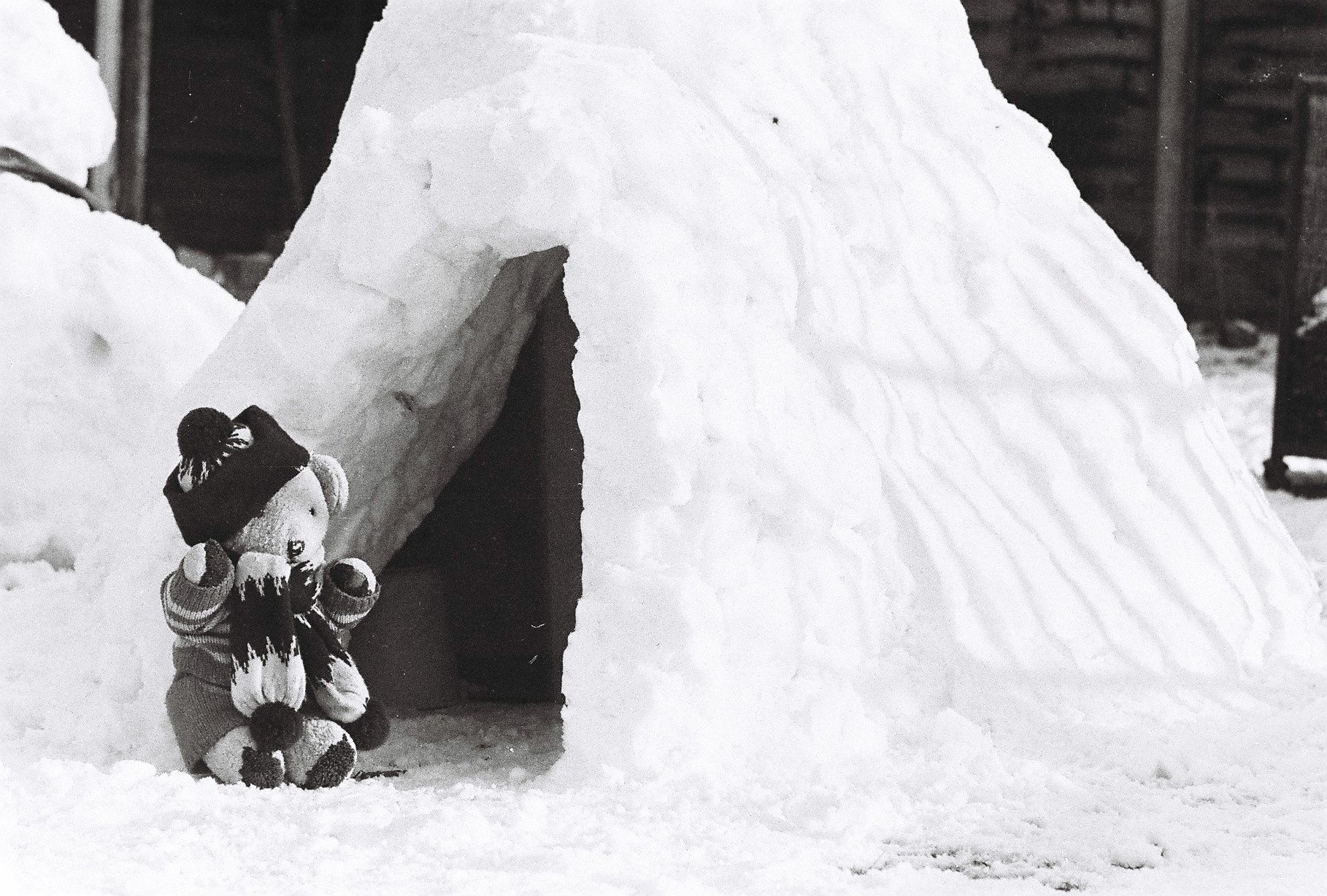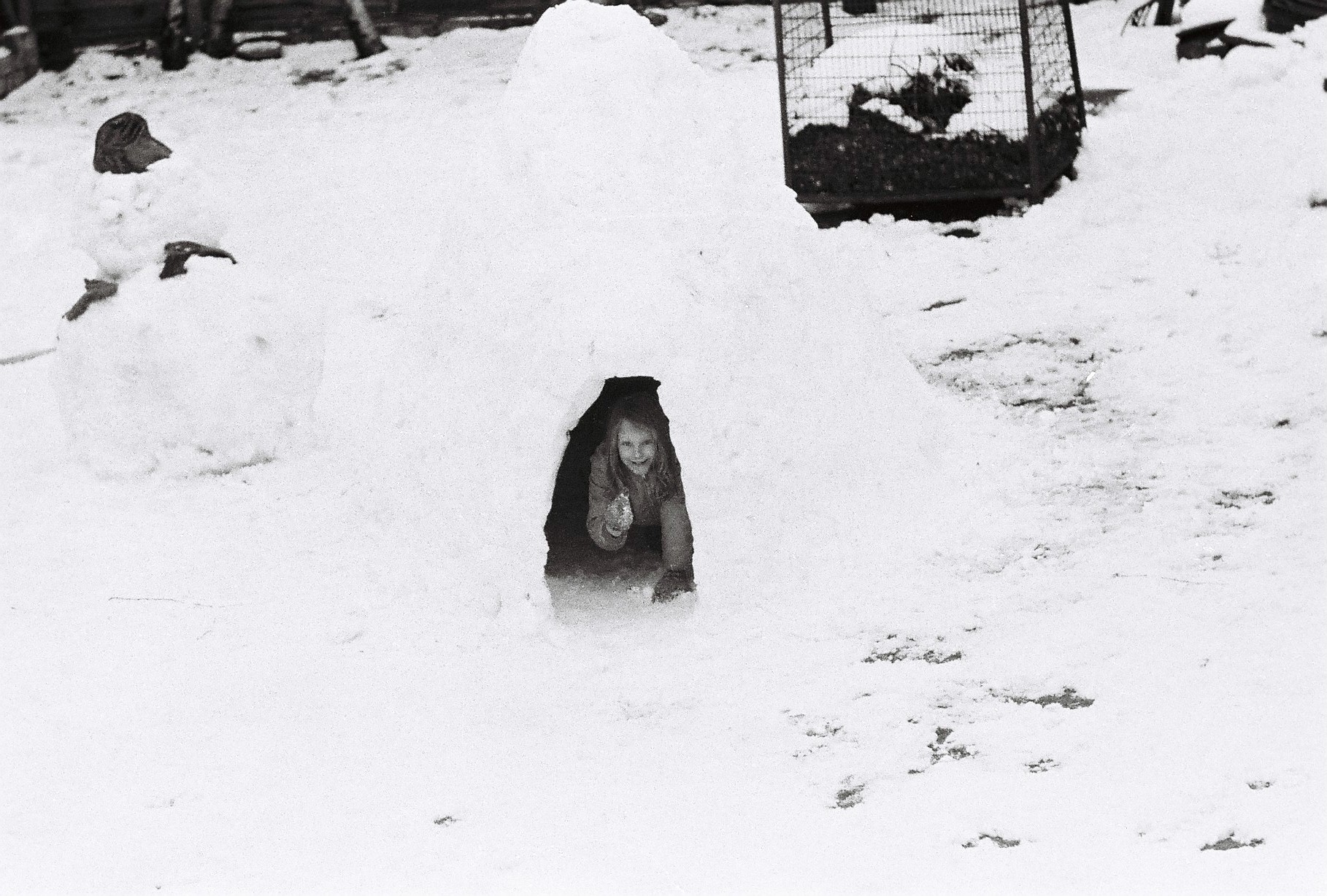 A snowman and and igloo from snowfall in Bosty Lane, Aldridge, 44 winters ago.