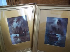 My father bought these rather gloomy, continental looking seascapes at the Wychnor Hall sale in 1976, having been outbid on some Stevengraphs which he fancied better.