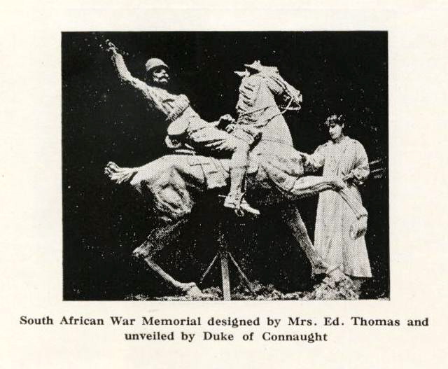 How did “Ted” Thomas become acquainted with Miss Geraldine Blake? Â Perhaps a clue lies in the following. Â A fine statue, representing a trooper of the Ceylon Mounted Infantry giving the signal “enemy is in sight” was commissioned by Mr Thomas senior in memory of his son and his fallen comrades. It was unveiled in Ceylon by H.R.H. The Duke of Connaught on March 18th 1907, some six weeks after the marriage of Lieutenant Thomas to the designer of the memorial.
