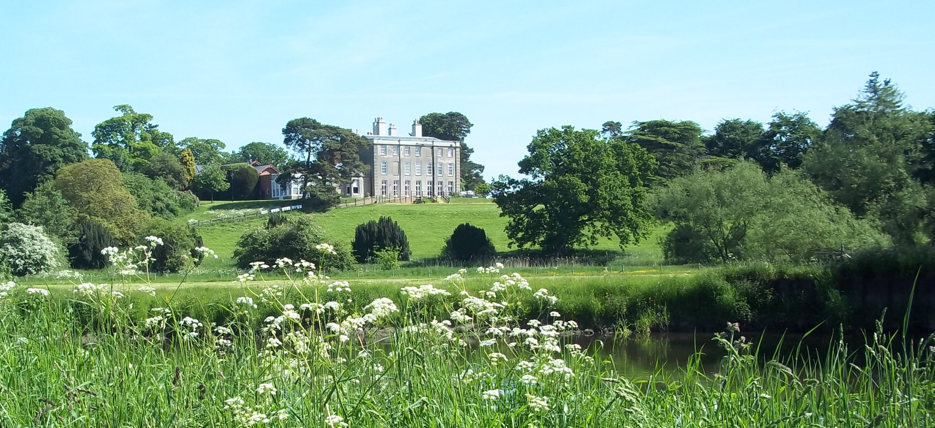 The north elevation of Orgreave Hall peeps over the meadows which divide it from the River. They are picturesque with toxic buttercup, making the pasture dangerous, but proving the wetness of the land.