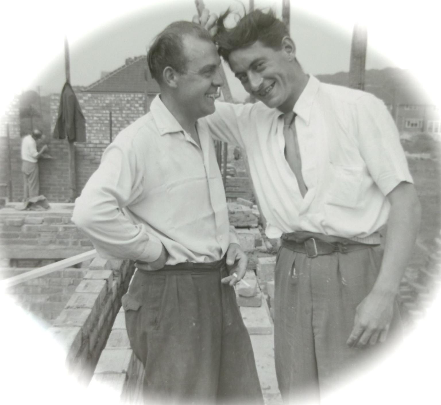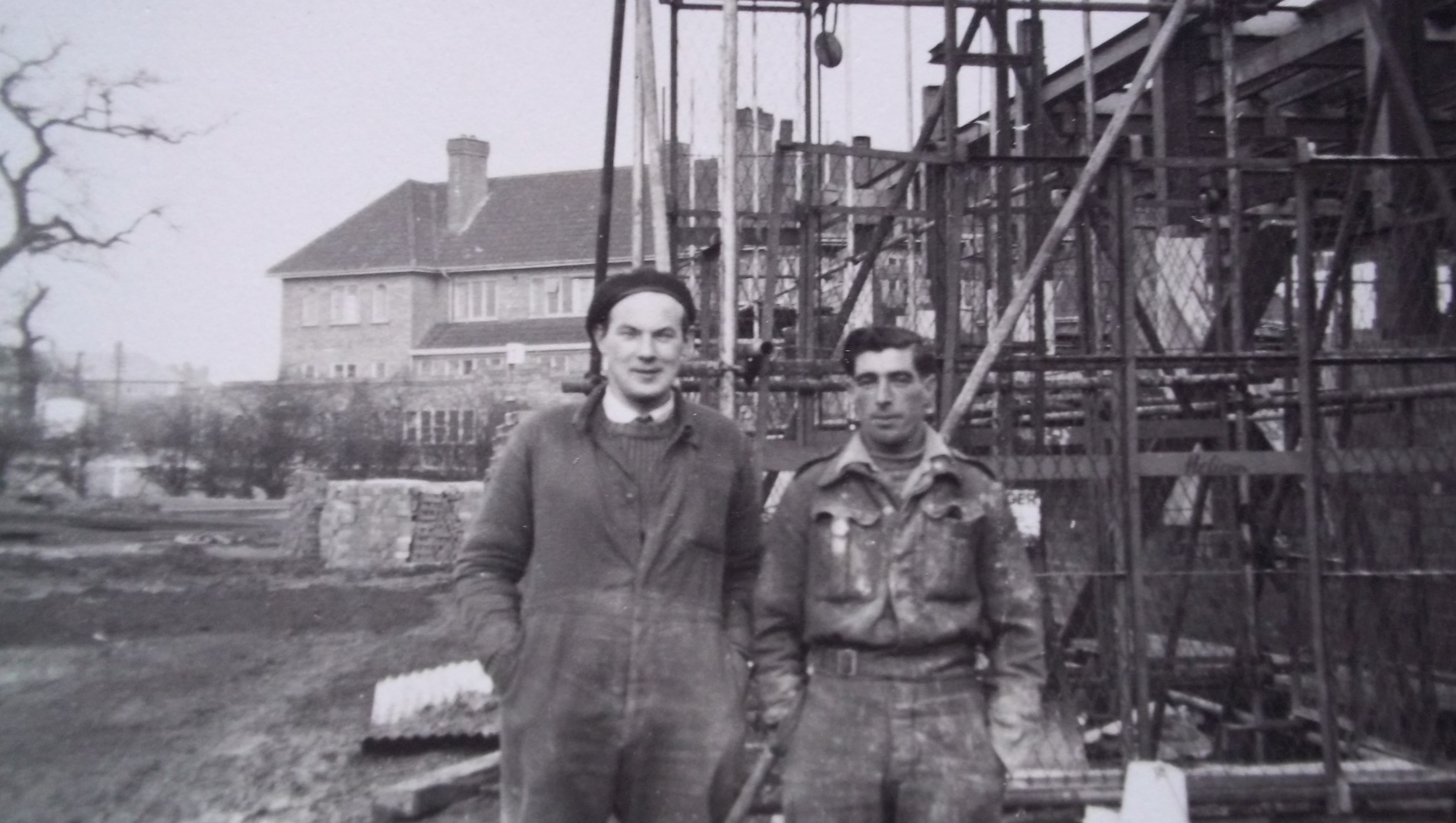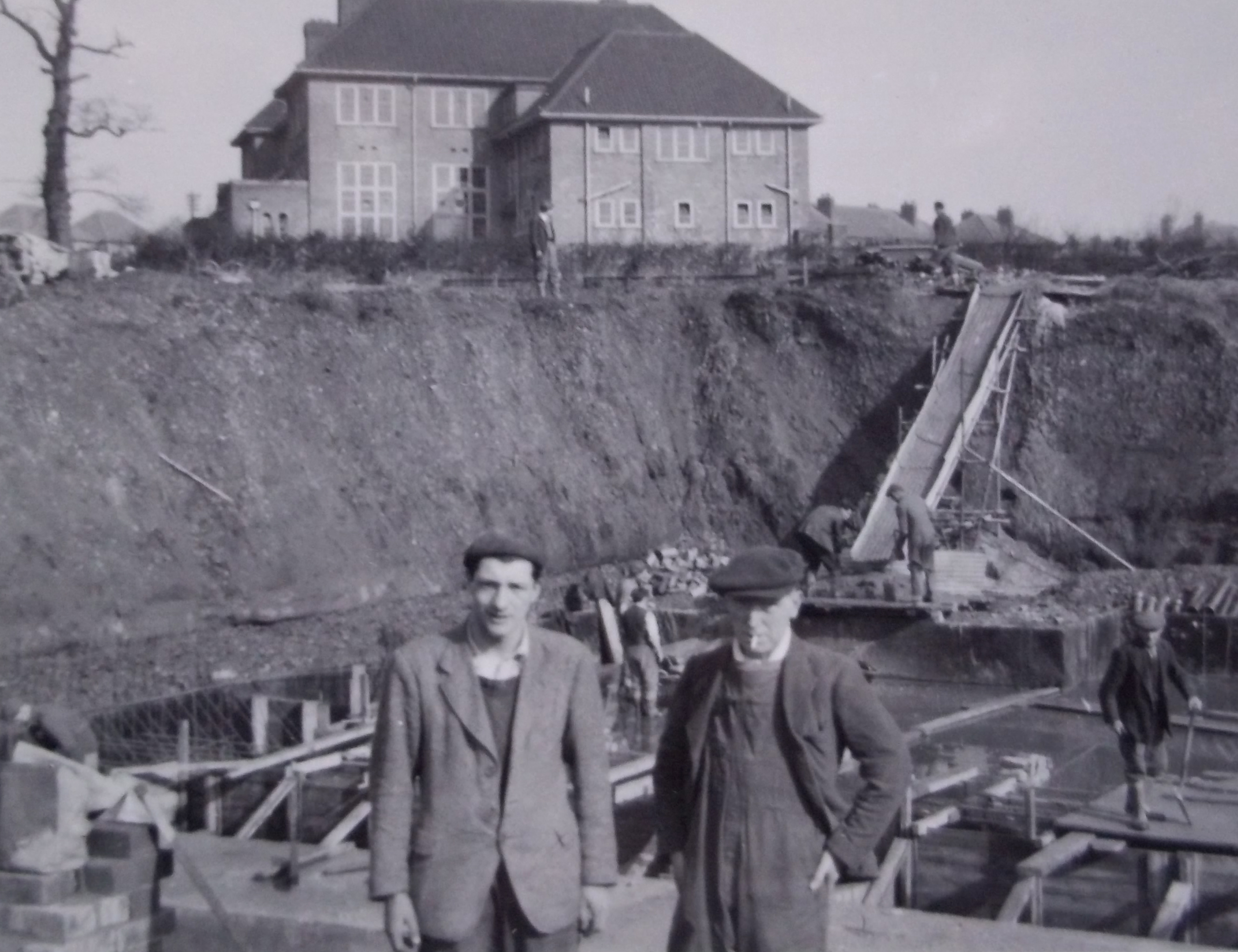 My dad, Edwin Noah Horton, (1925-2007) , (left in the photo), on site for J.R. Deacon at the construction of Brooklyn Farm Technical College in Great Barr, in about 1951.