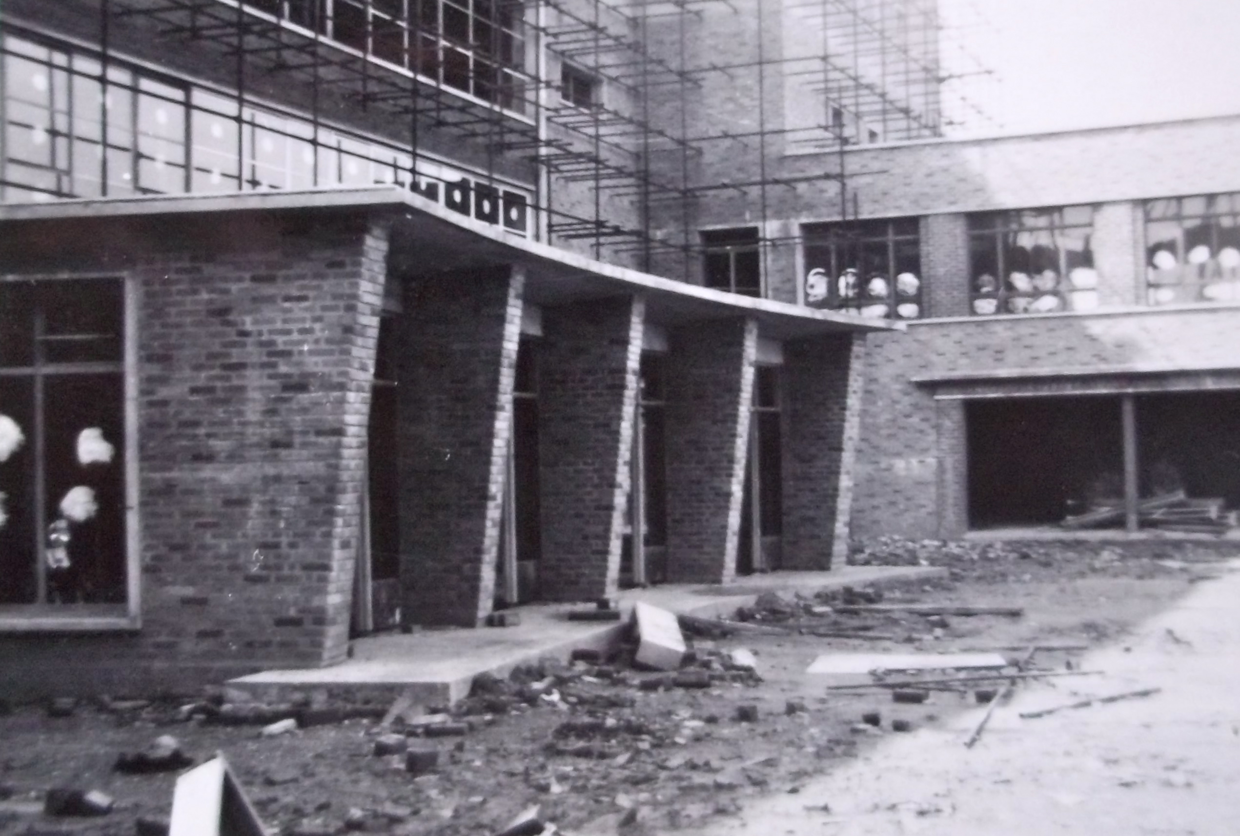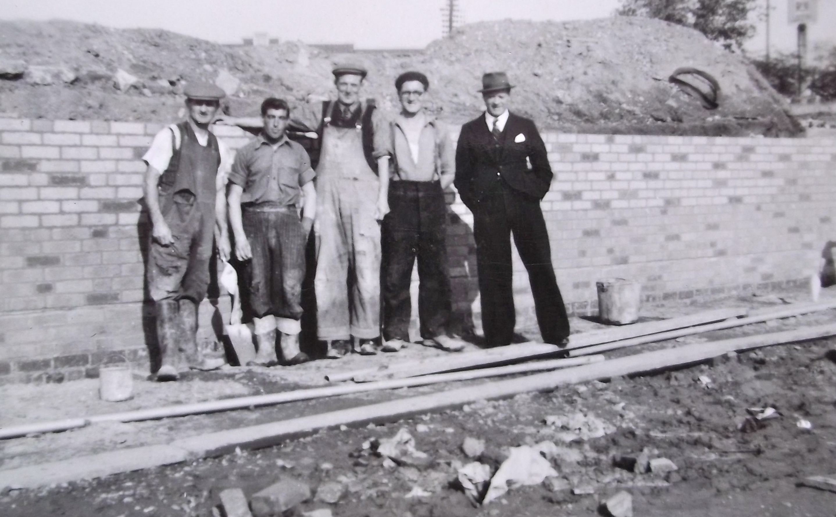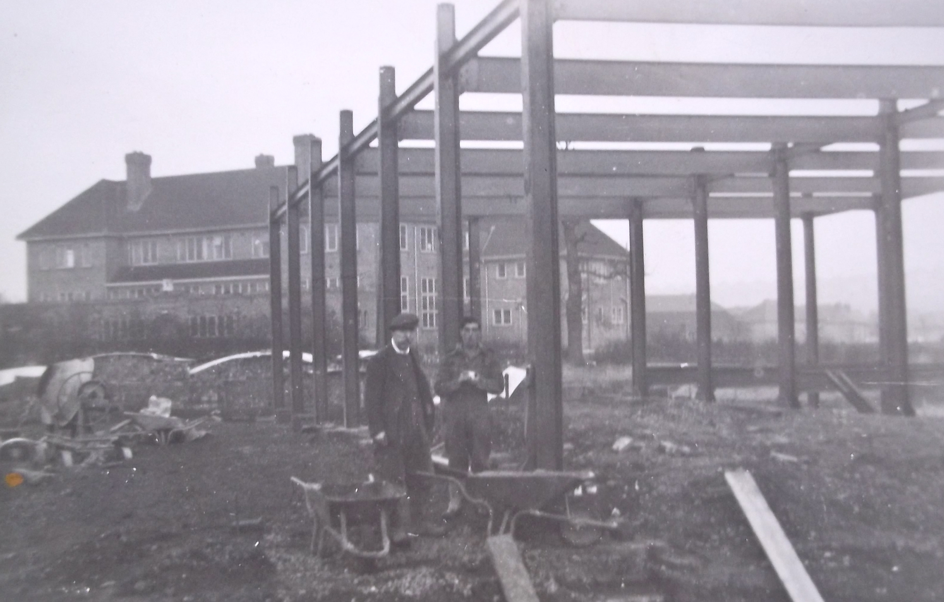 My dad, Edwin Noah Horton, (1925-2007) , (left in the photo), on site for J.R. Deacon at the construction of Brooklyn Farm Technical College in Great Barr, in about 1951.