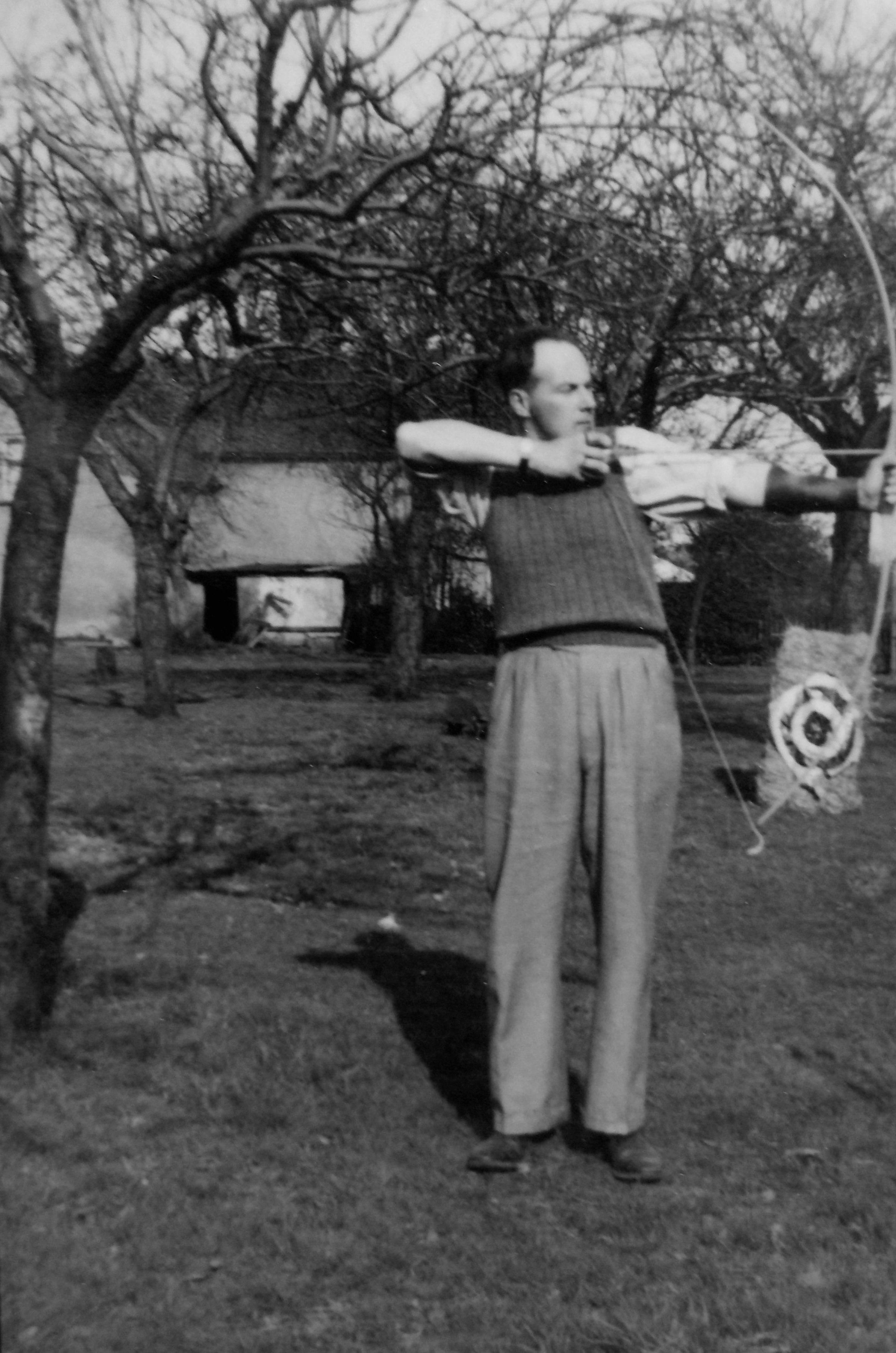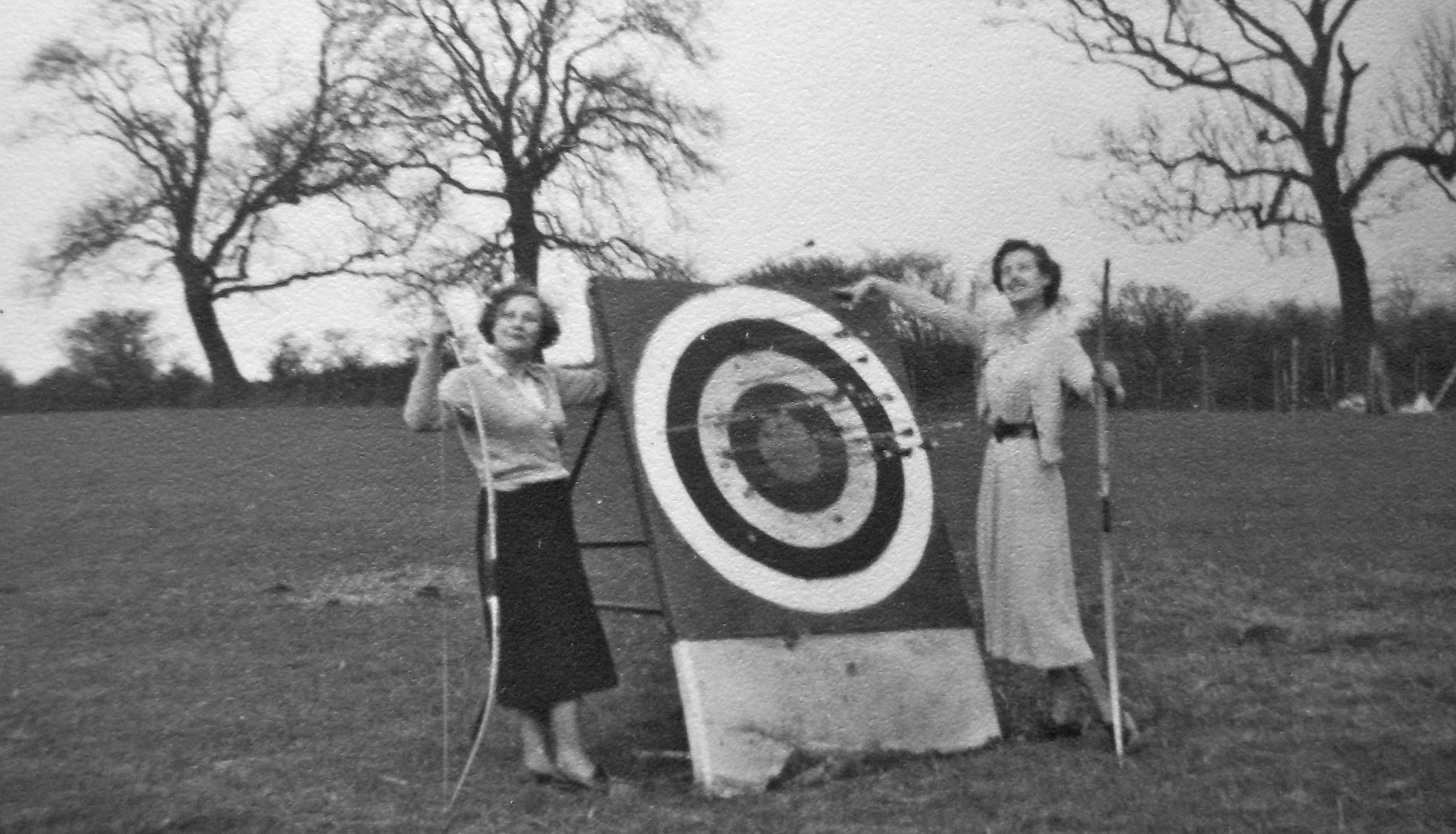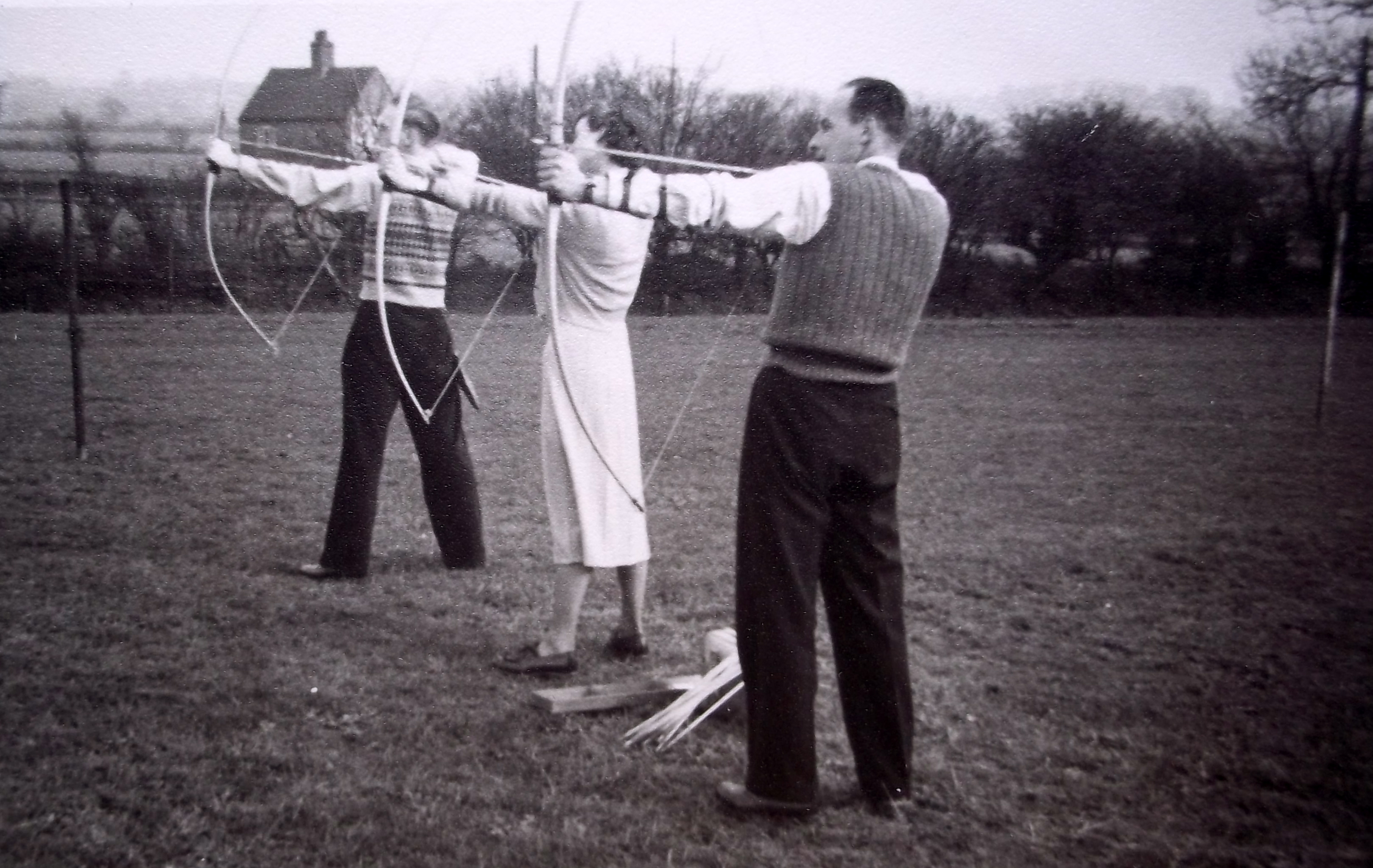 No, to inveigle my mother into an interest in the sport, it had to be a light-hearted affair. They set up their targets in the orchard at my dad’s sister and brother-in-law’s farm near Shenstone, to try their aim with their Slazenger equipment.