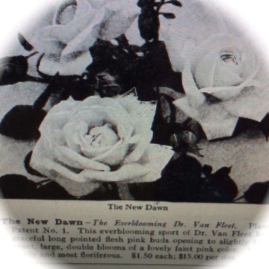 “The New Dawn” was bred by Henry Dreer of Philadelphia in the 1920’s. Here it appears in his 1938 catalogue.